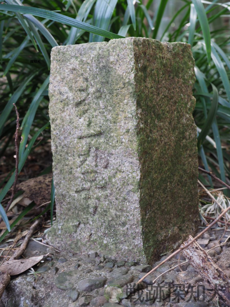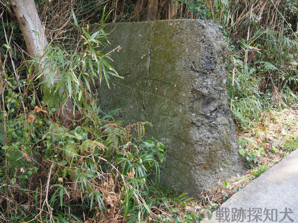 発電機室の南側の谷(発電機室より約15m)に、境界石第十九号が設置されています。海軍の波マークも彫られています。
