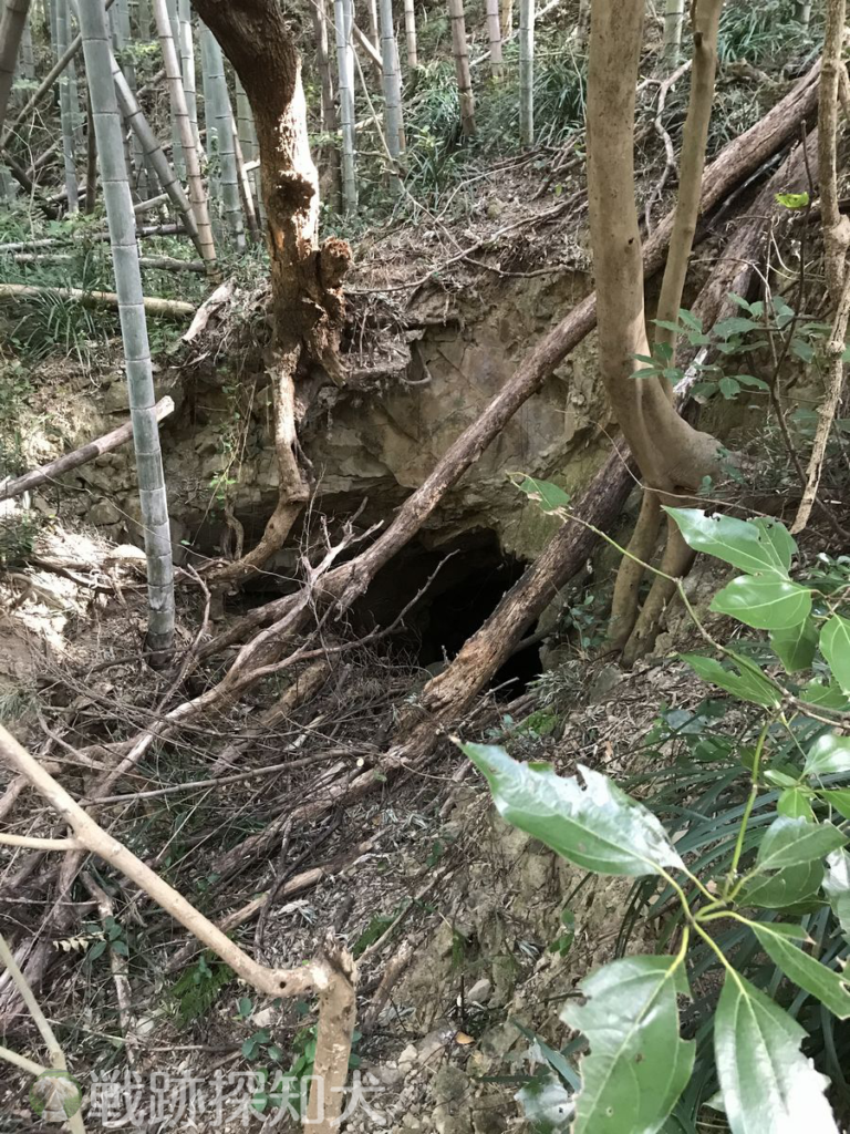 標柱第十九号から南へ約30mの場所から、さらに東へ約15m進んだ位置にあります。壕口②と同様に、壕口までは交通壕のような凹部になっており、容易に確認することができます。落下してきた土砂等で壕口が塞がりかけています。こちらについても壕内の状況は確認していません。