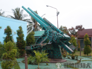 インドネシアのバリクパパンに四十口径八九式十二糎七高角砲の連装砲が残されていました。高角砲の南側は製油所があり、戦時中は日本海軍の第百二海軍燃料廠として運用されていました。高角砲は海軍第百二燃料廠を空襲から守るための防空砲台として設置されたと考えられます。